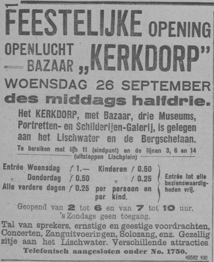 De kerk en het geloof zijn voor veel bewoners uit de wijk nog het fundament van het bestaan. Ook onder de Liberalen en S.D.A.P. stemmers hangen nog velen een christelijk geloof aan. Een klein groepje is joods. Zij wonen verspreid in de wijk, met enkele families in de Willebrordustraat, de Bergselaan en de Bergweg. De groep katholieke bewoners is wat ruimer vertegenwoordigd, maar de grootste groep is protestants met een flink aantal gereformeerden en een behoorlijk grote groep hervormden. Vreemd genoeg is er voor de hervormde gemeente nog geen kerkgebouw in het Nieuwe Noorden. Op een stuk aangekochte grond iets buiten de wijk, bij de Walenburgerweg zou daar verandering in moeten komen. Het geld om een kerk te kunnen bouwen wordt normaal gesproken opgebracht vanuit donaties en meestal zijn er binnen een kerkgemeente altijd wel een paar grote geldschieters. Deze keer is het in de nasleep van de zware mobilisatiejaren niet het geval en het kerkbestuur moet op zoek gaan naar alternatieven. Het idee wordt geboren om het geld voor de bouw van de kerk bijeen te krijgen via het organiseren van een groot meerdaags evenement. Het terrein bij het Liswater wordt hiervoor wederom als evenementenlocatie gekozen. Hier wordt in september 1923 in enkele dagen tijd een compleet kerkdorp gebouwd met houten replica's van drie iconische Rotterdamse hervormde kerken: de Laurenskerk, de Koninginnekerk en de Noorderkerk uit de Jacob Catsstraat. Verder is er een schilderijengalerij, zijn er diverse tenten en tentjes waarin voordrachten gegeven kunnen worden en is het terrein uitgebreid versierd. Het wordt een meerdaags evenement waar veel bewoners uit de noordelijke wijken op af komen. Het feestterrein wordt door het vrijwillige personeel van brandspuit 54 uit de Ackersdijkstraat beveiligd tegen brand en calamiteiten.