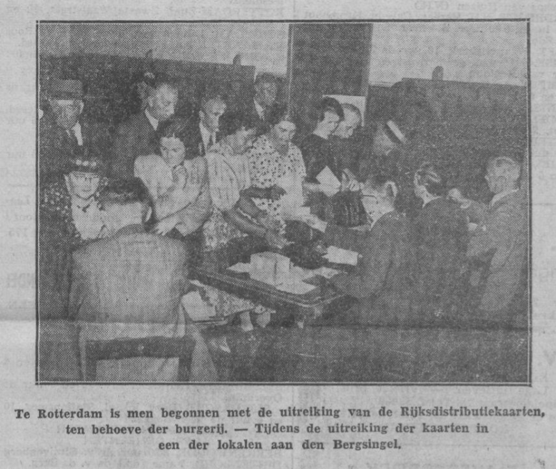 31 augustus 1939. Terwijl de vlaggen uit hangen voor de verjaardag van koningin Wilhelmina staat de dag in het teken van het uitgeven van rijksdistributiekaarten. Een lange rij bewoners wacht buiten bij de zij ingang van de Bergsingelkerk hun beurt af. Eenmaal binnen kunnen ze hun kaarten in ontvangst nemen.